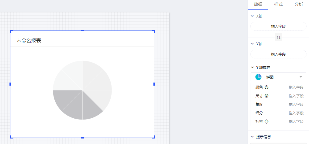 以默认数据模型为例,查看地区的销售额占比情况,将涉及到2个字段:维度“地区”,度量“销售额”。