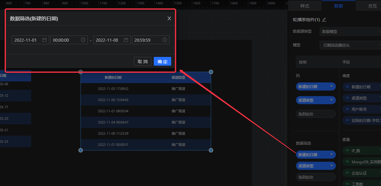 度量字段支持范围筛选(有范围、至少、至多3种筛选方式)